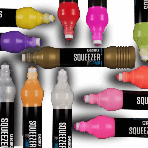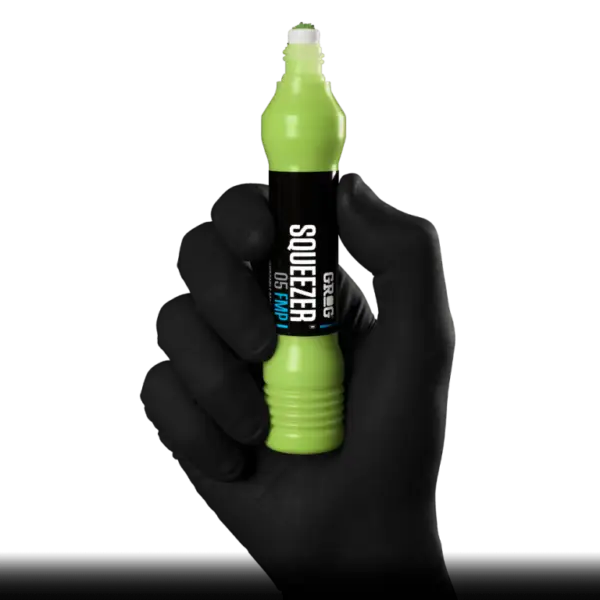 Der SQUEEZER 05 FMP ist der intelligenteste Marker seiner Klasse und wurde speziell für maximale Kontrolle und starke Ergebnisse entwickelt. Ausgestattet mit einer 5 mm FLOWTEX Rundspitze und einem flexiblen, weichen Körper, ermöglicht er dir präzises Arbeiten sowie satte, gleichmäßige Farbverläufe – perfekt für kreative Anwendungen im urbanen Raum.