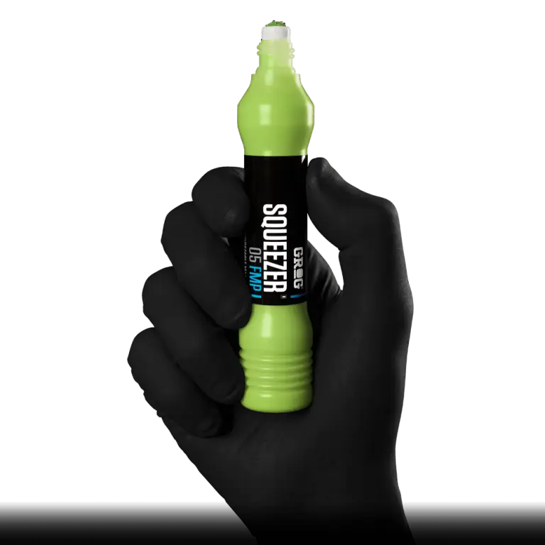 Der SQUEEZER 05 FMP ist der intelligenteste Marker seiner Klasse und wurde speziell für maximale Kontrolle und starke Ergebnisse entwickelt. Ausgestattet mit einer 5 mm FLOWTEX Rundspitze und einem flexiblen, weichen Körper, ermöglicht er dir präzises Arbeiten sowie satte, gleichmäßige Farbverläufe – perfekt für kreative Anwendungen im urbanen Raum.